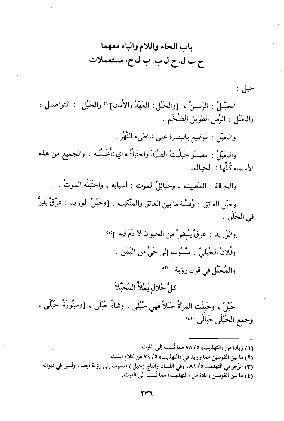 باب الحاء واللام والباء معهما ح ب ل، ح ل ب، ب ل ح، مستعملات