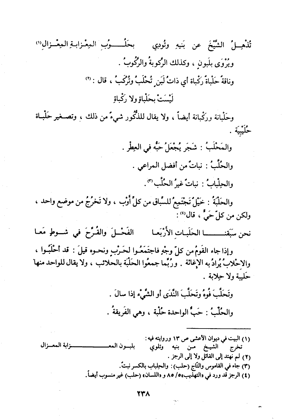 (4) الرجز قد ورد في التهذيب 5/ 85 واللسان (حلب) غير منسوب أيضا.