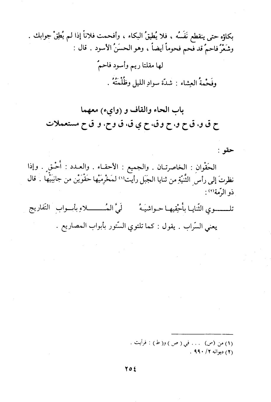 باب الحاء والقاف و (وا يء) معهما ح ق و، ق ح و، ح وق، ح ي ق، ق وح، وق ح مستعملات