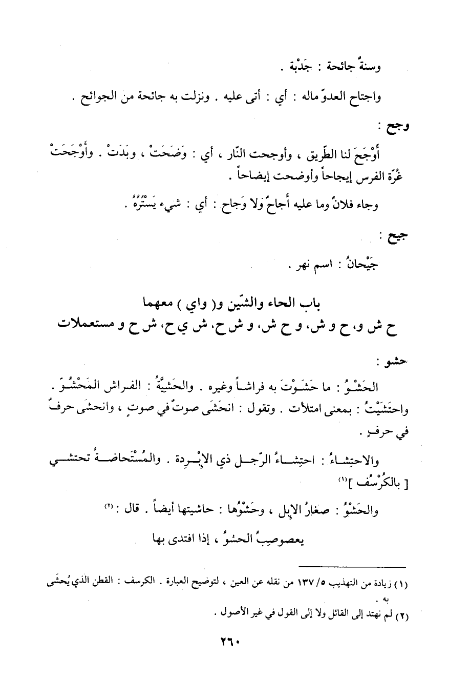 باب الحاء والشين و (وا ي) معهما ح ش و، ح وش، وح ش، وش ح، ش ي ح، ش ح ومستعملات