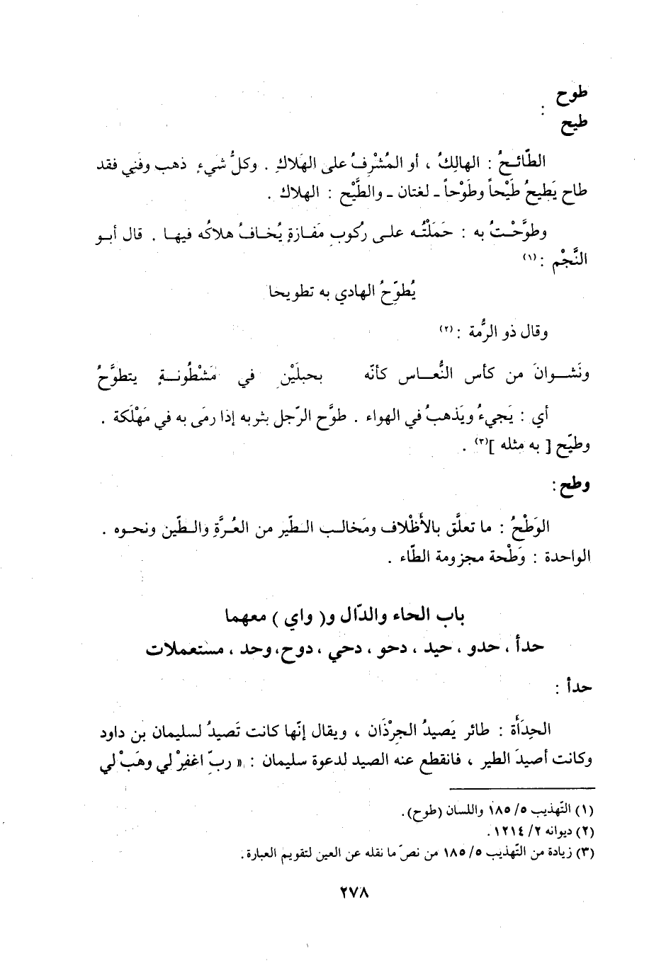 باب الحاء والدال و (وا يء) معهما حدأ، حدو، حيد، دحو، دحي، دوح، وحد، مستعملات