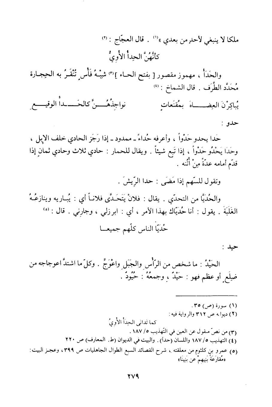 (4) التهذيب 5/ 187 واللسان (حدأ) . والبيت في الديوان (ط. المعارف) ص 220