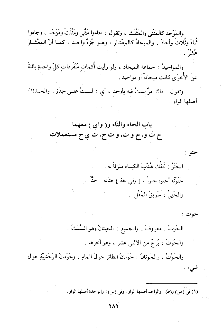 باب الحاء والتاء و (وا ي) معهما ح ت و، ح وت، وت ح، ت ي ح مستعملات