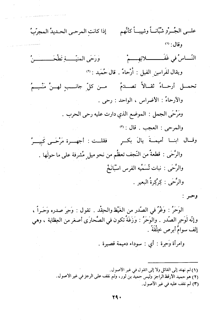 ويقال لفَراسِنِ الفيل: أَرْحاءٌ. قال حميد: «2»