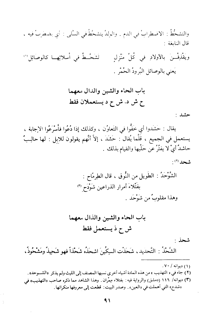 (2) جاء في التهذيب من هذه المادة أشياء أخرى نسبها المصنف إلى الليث ولم يذكر الشوحد.