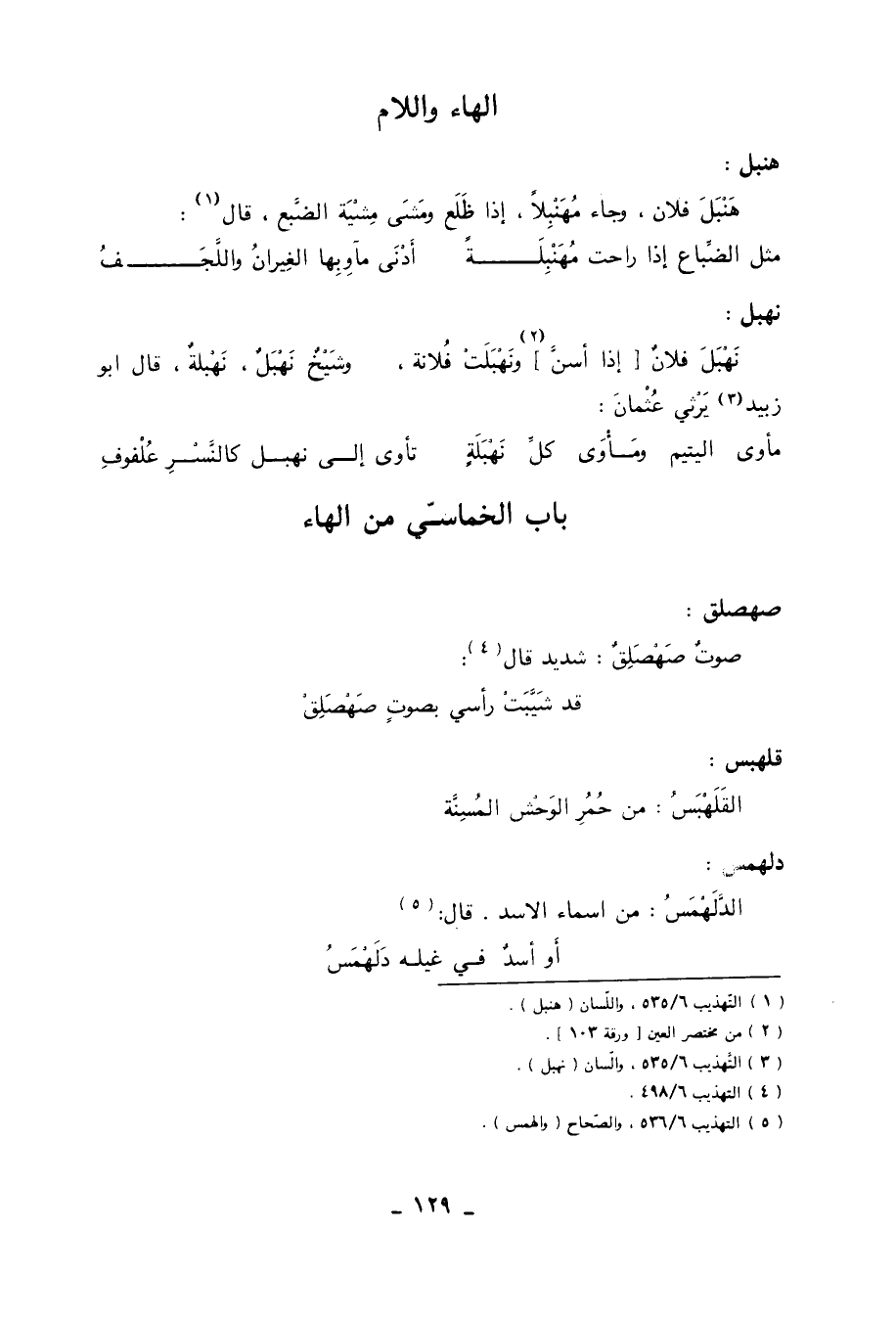 (1) التهذيب 6/ 535، واللسان (هنبل) .