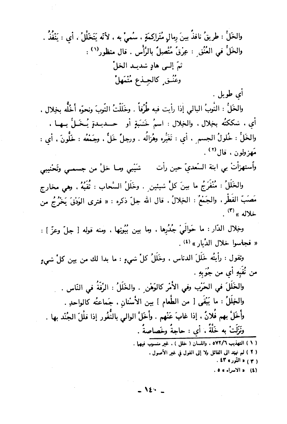(1) التهذيب 6/ 572، واللسان (خلل) ، غير منسوب فيهما.