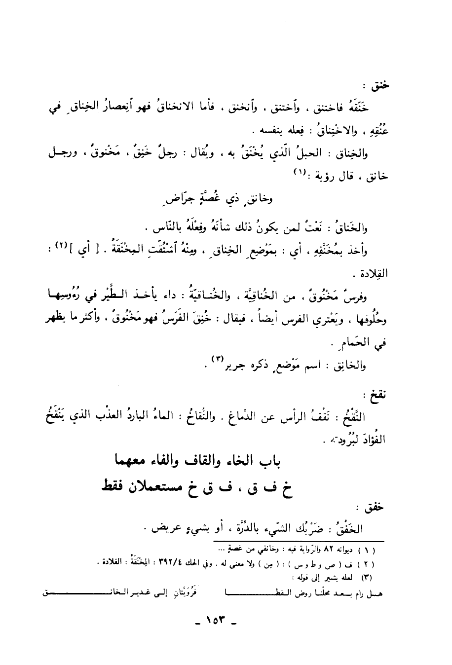 باب الخاء والقاف والفاء معهما خ ف ق، ف ق خ مستعملان فقط