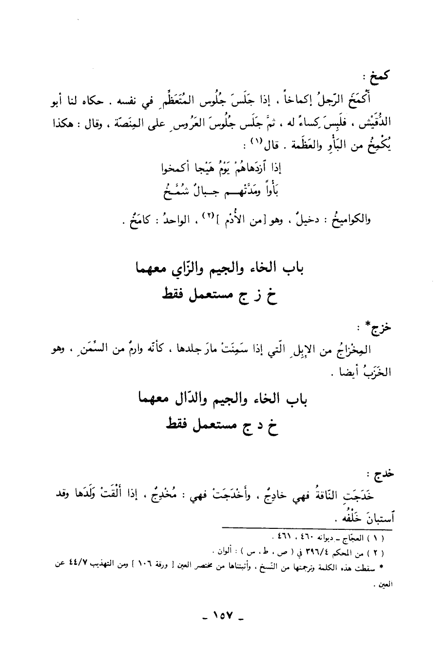 باب الخاء والجيم والزاي معهما خ ز ج مستعمل فقط