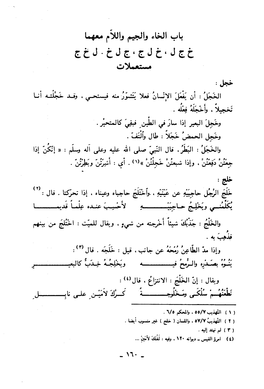 باب الخاء والجيم واللام معهما خ ج ل، خ ل ج، ج ل خ، ل خ ج مستعملات