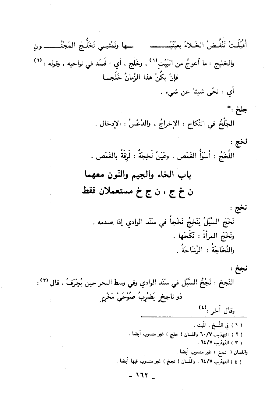 باب الخاء والجيم والنون معهما ن خ ج، ن ج خ مستعملان فقط