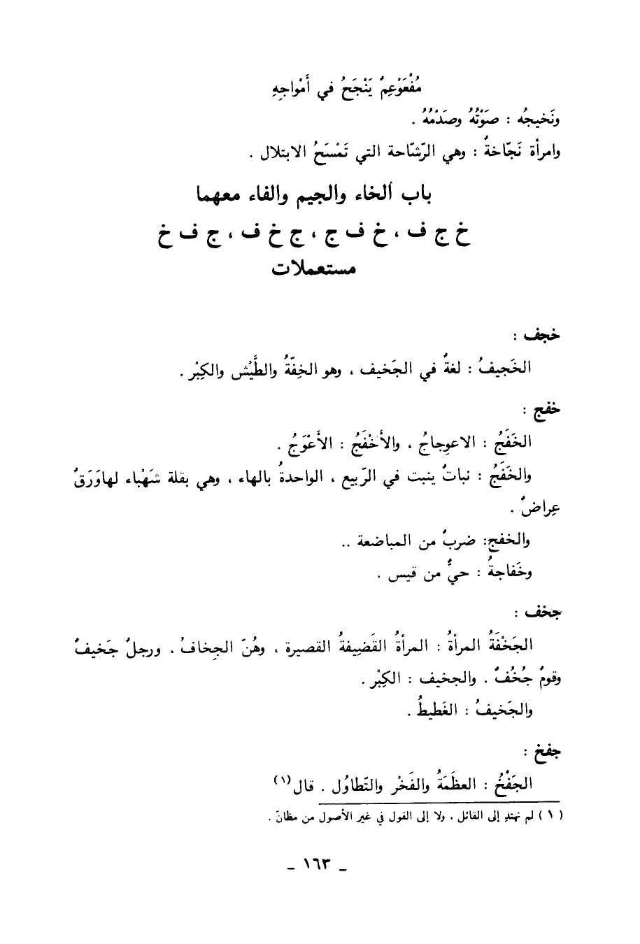 باب الخاء والجيم والفاء معهما خ ج ف، خ ف ج، ج خ ف، ج ف خ مستعملات