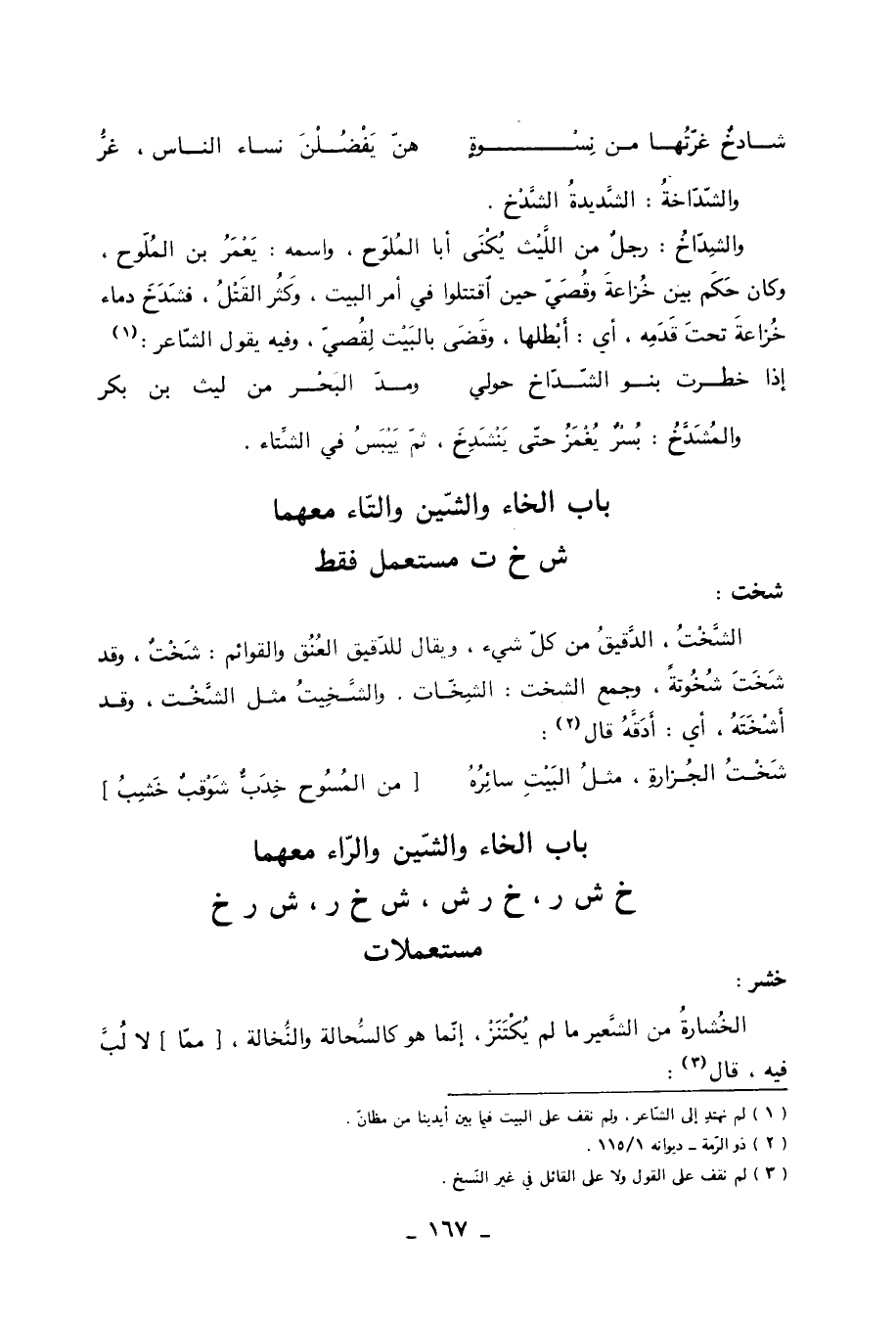 باب الخاء والشين والراء معهما خ ش ر، خ ر ش، ش خ ر، ش ر خ مستعملات