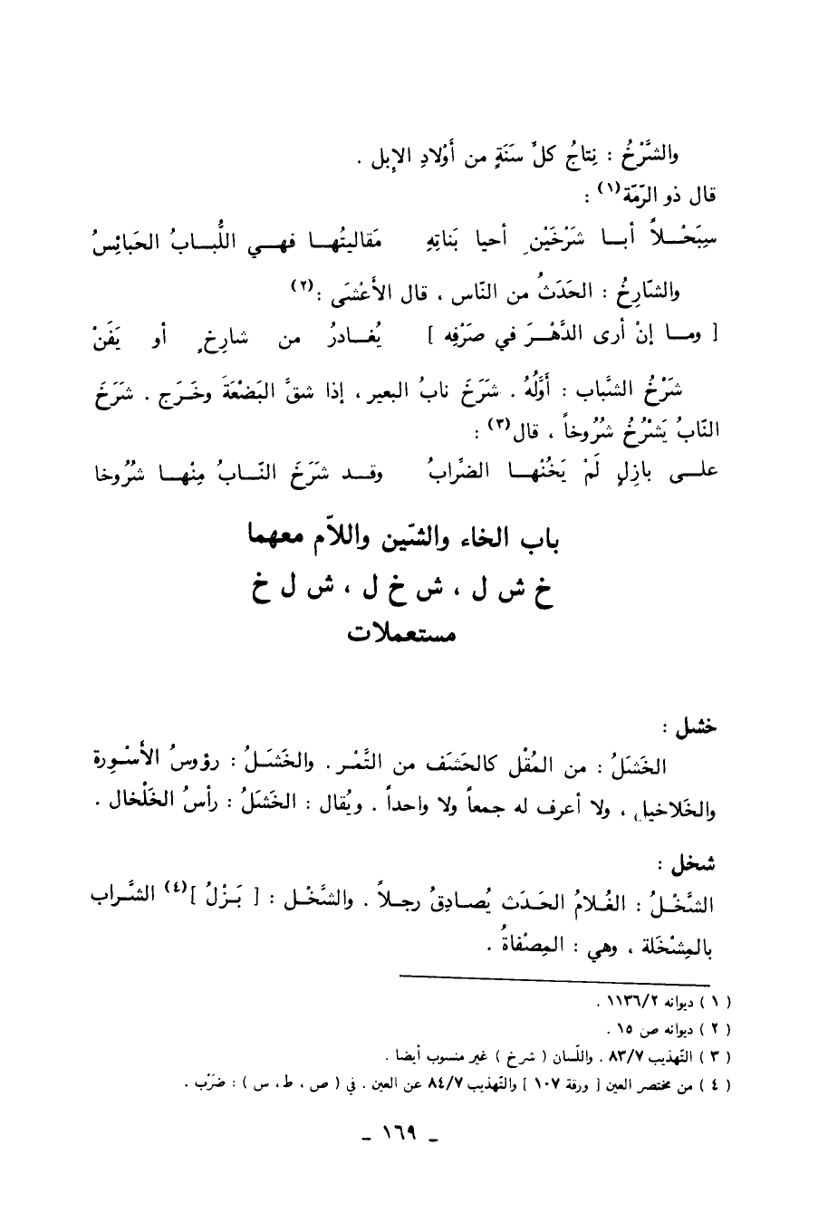 باب الخاء والشين واللام معهما خ ش ل، ش خ ل، ش ل خ مستعملات