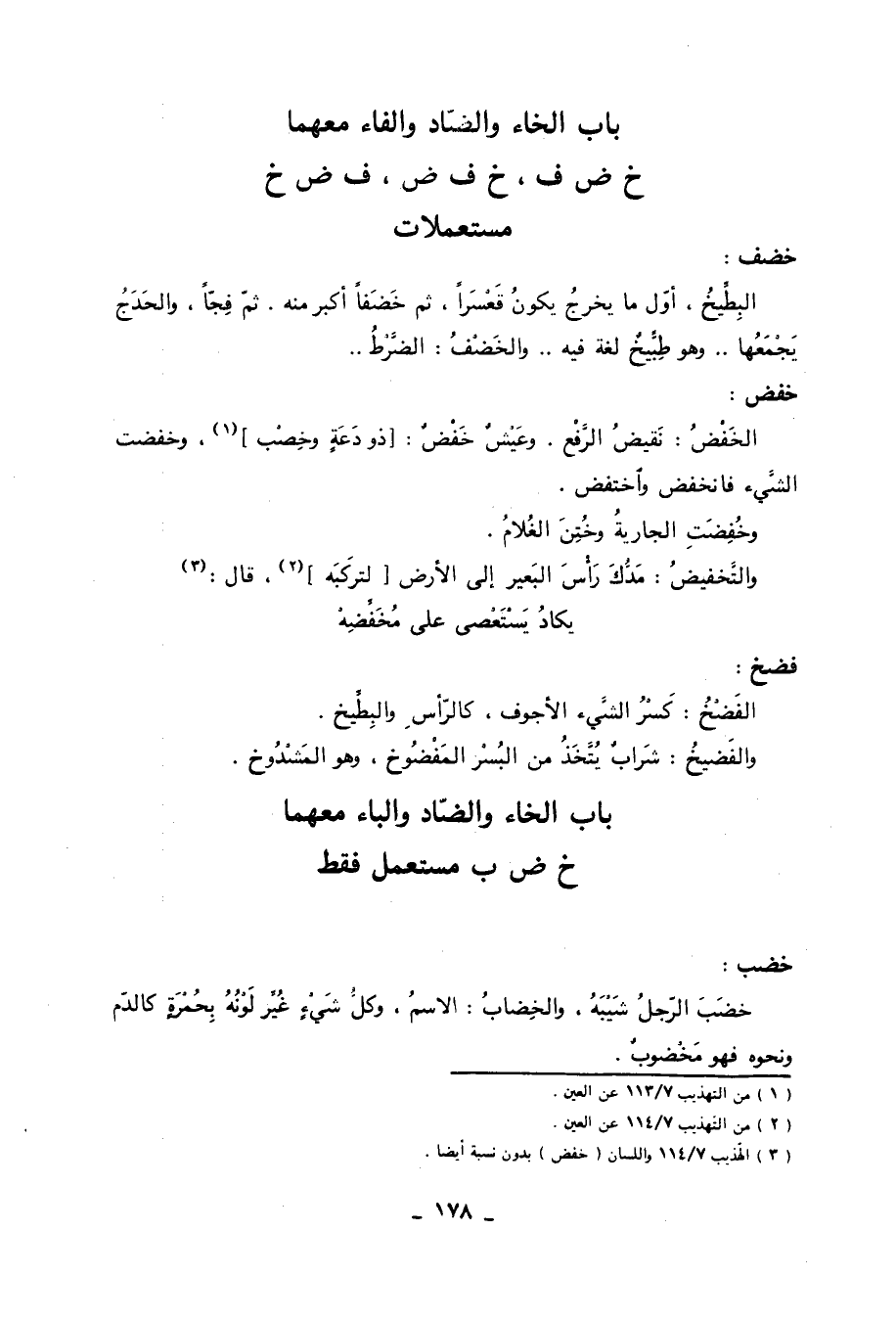 باب الخاء والضاد والفاء معهما خ ض ف، خ ف ض، ف ض خ مستعملات