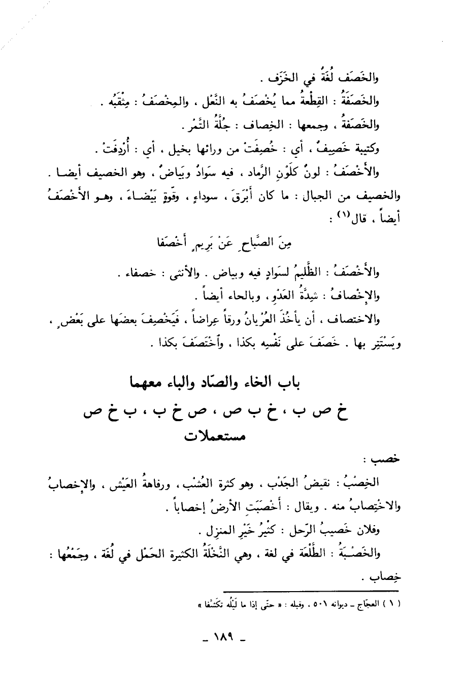 باب الخاء والصاد والباء معهما خ ص ب، خ ب ص، ص خ ب، ب خ ص مستعملات