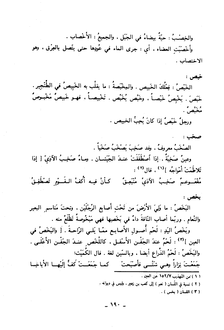 بخص: البَخَصُ: ما ولي الأرض من تحت أصابع الرجلين، وتحت مناسم البعير والنعام. وربما أصاب الناقة داء في بَخَصِها فهي مَبْخُوصةٌ تظلع منه. وبَخَصُ اليد: لحم أصول الأصابع مما يلي الراحة. [والبَخَصُ في العين] «3» : لحم عند الجفن الأسفل، كاللَّخَصِ عند الجفن الأعلى. والبَخَصُ: لحم الذراع أيضا، وبالسين لغة. قال الكميت:
