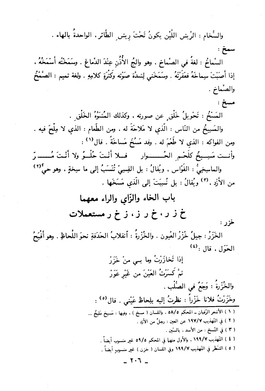 باب الخاء والزاي والراء معهما خ ز ر، خ ر ز، ز خ ر مستعملات