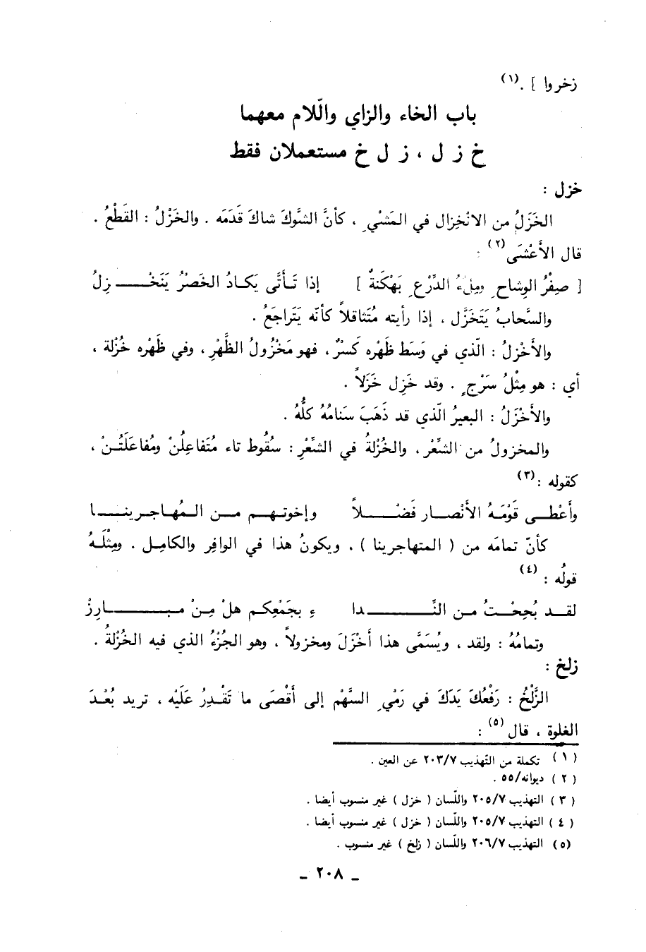 باب الخاء والزاي واللام معهما خ ز ل، ز ل خ مستعملان فقط