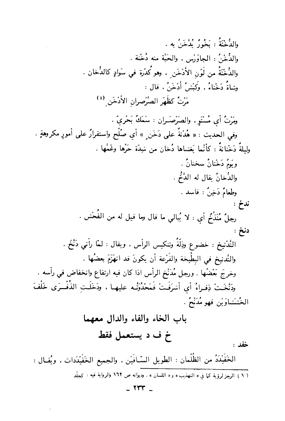 باب الخاء والفاء والدال معهما خ ف د يستعمل فقط
