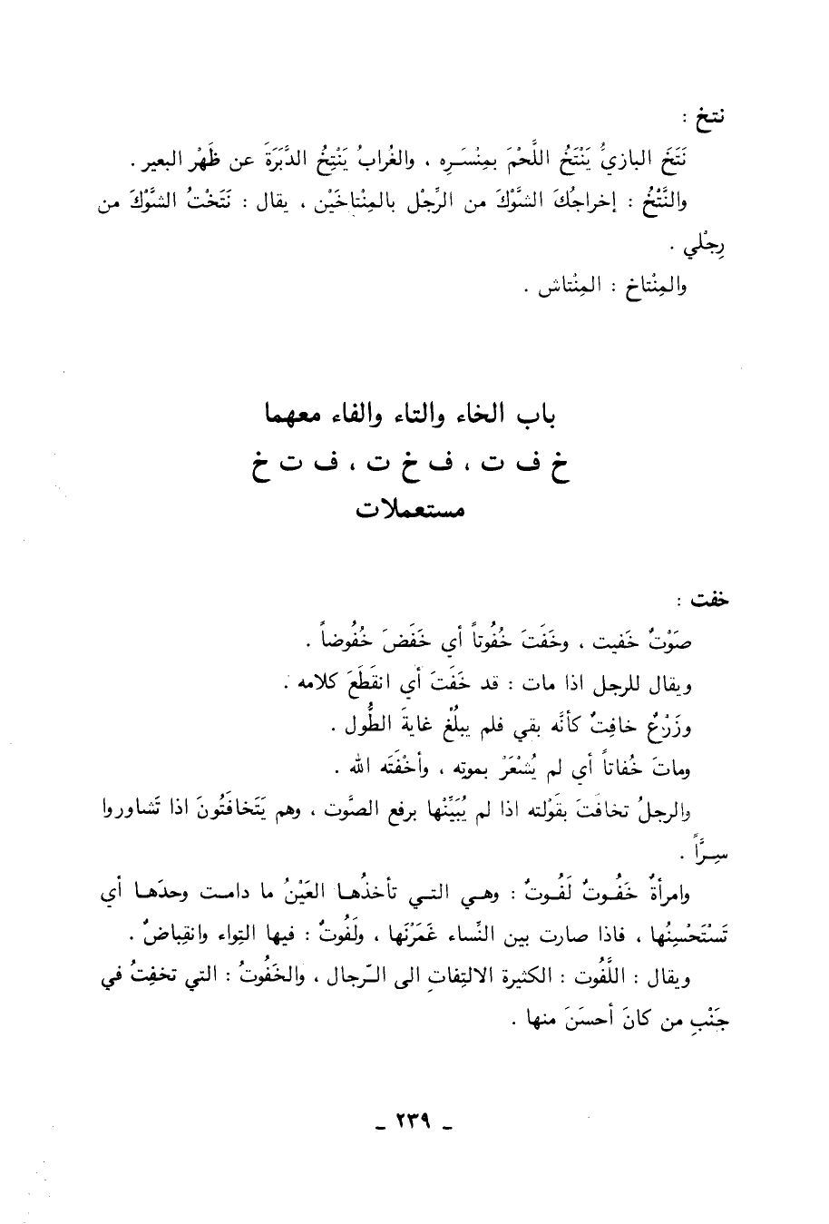 باب الخاء والتاء والفاء معهما خ ف ت، ف خ ت، ف ت خ مستعملات