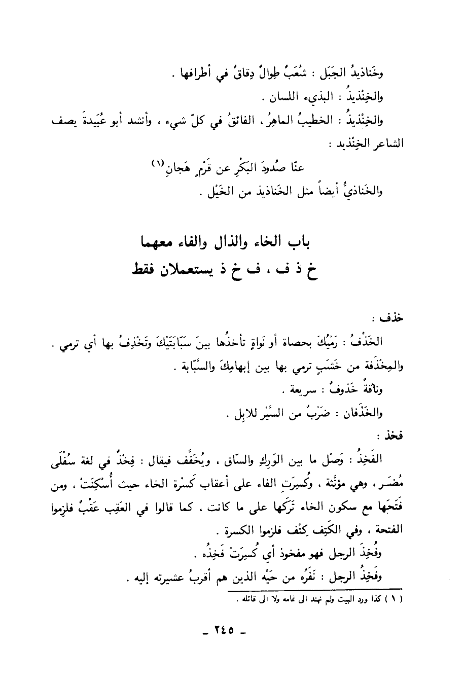 باب الخاء والذال والفاء معهما خ ذ ف، ف خ ذ يستعملان فقط