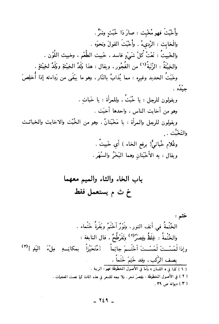 باب الخاء والثاء والميم معهما خ ث م يستعمل فقط