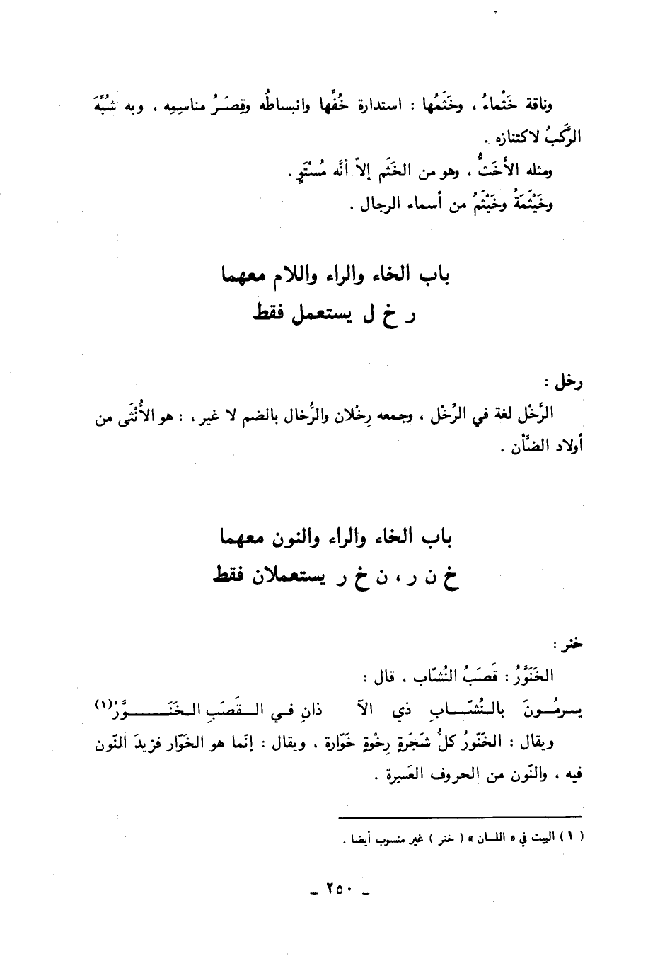 باب الخاء والراء والنون معهما خ ن ر، ن خ ر يستعملان فقط