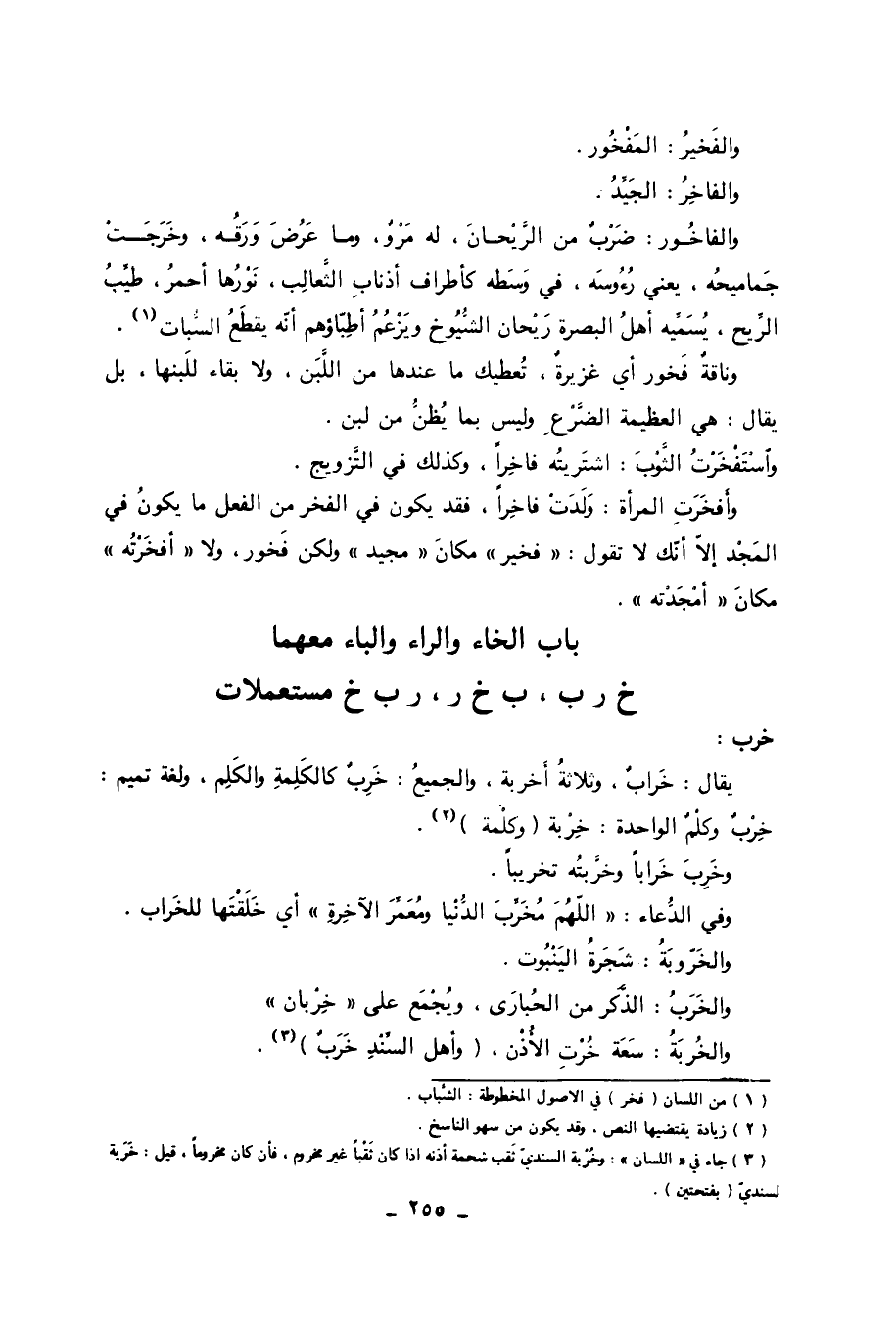 باب الخاء والراء والباء معهما خ ر ب، ب خ ر، ر ب خ مستعملات