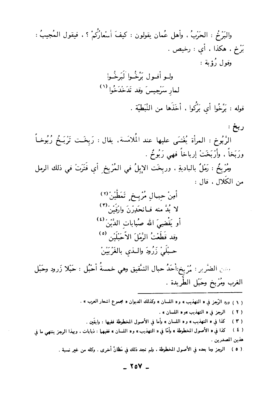 (1) ورد الرجز في التهذيب واللسان وكذلك الديوان مجموع أشعار العرب.