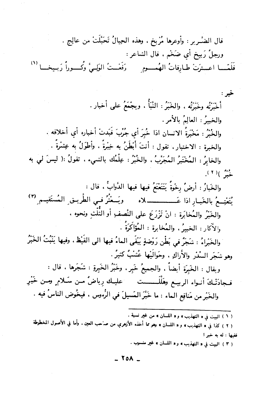 (2) كذا في التهذيب واللسان وهو مما أخذه الأزهري من صاحب العين، وأما في الأصول المخطوطة ففيها: له به خبر!