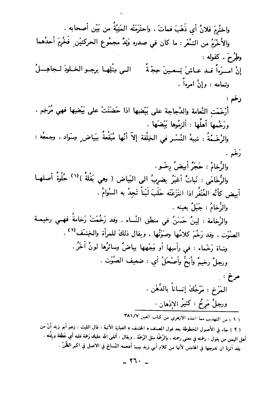 (1) من التهذيب مما أخذه الأزهري من كتاب العين 7/ 381