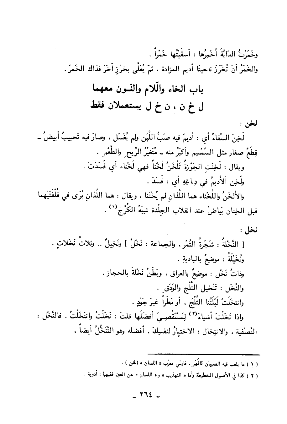 باب الخاء واللام والنون معهما ل خ ن، ن خ ل يستعملان فقط