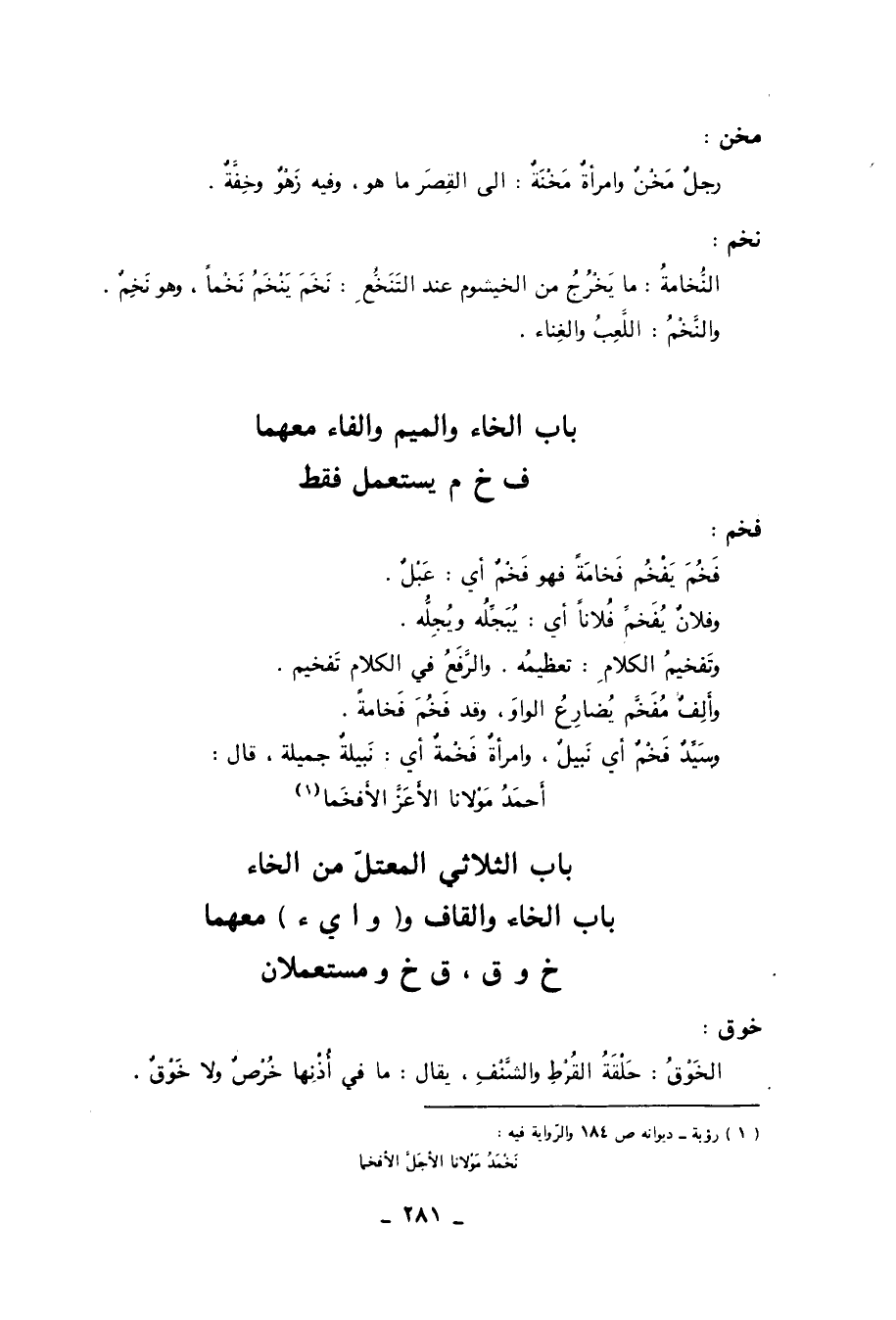 باب الخاء والميم والفاء معهما ف خ م يستعمل فقط