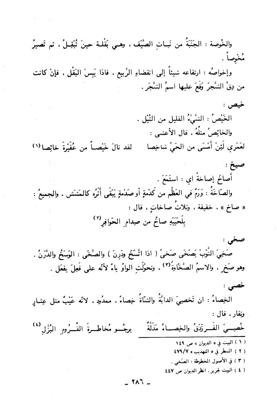 خيص: الخَيْصُ: الشيء القليل من النيل. والخائِصُ مثله، قال الأعشى: