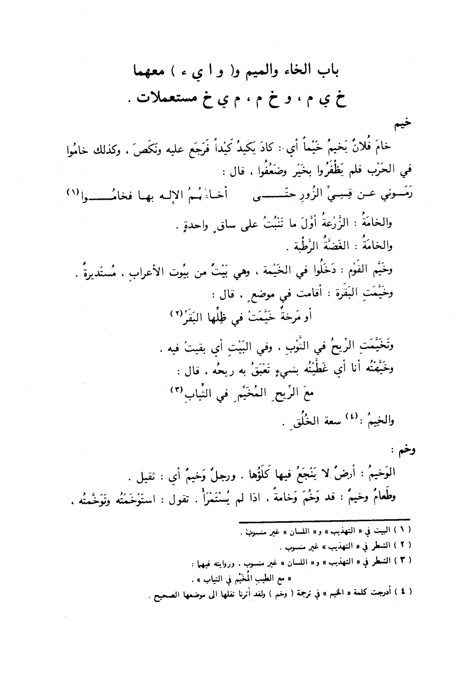 (4) أدرجت كلمة الخيم في ترجمة (وخم) ولقد آثرنا نقلها إلى موضعها الصحيح.