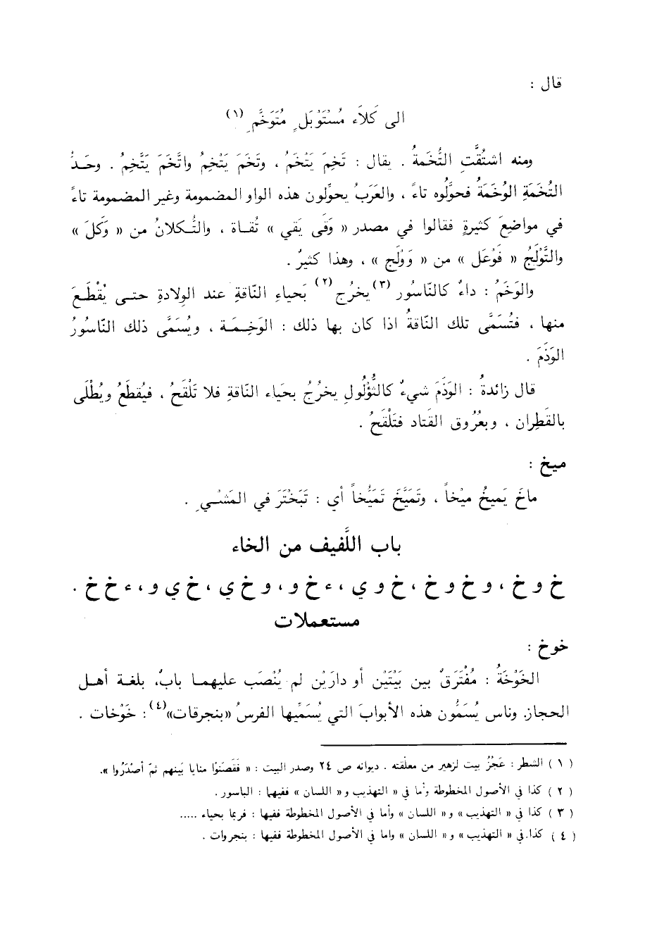 باب اللفيف من الخاء خ وخ، وخ وخ، خ وي، ء خ و، وخ ي، خ ي و، ء خ خ مستعملات