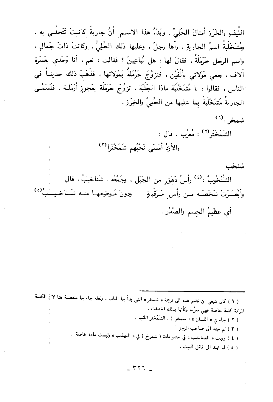 (4) وردت الشناخيب في حشو مادة (شمرخ في التهذيب وليست مادة خاصة.