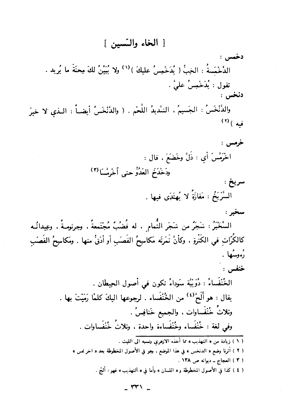 (1) زيادة من التهذيب مما أخذه الأزهري ونسبه إلى الليث.