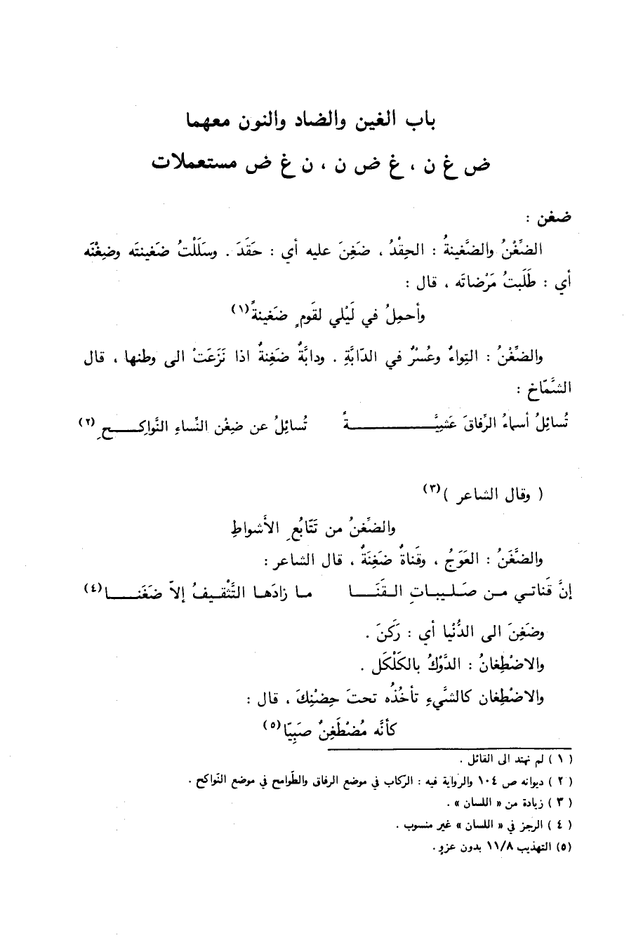 باب الغين والضاد والنون معهما ض غ ن، غ ض ن، ن غ ض مستعملات
