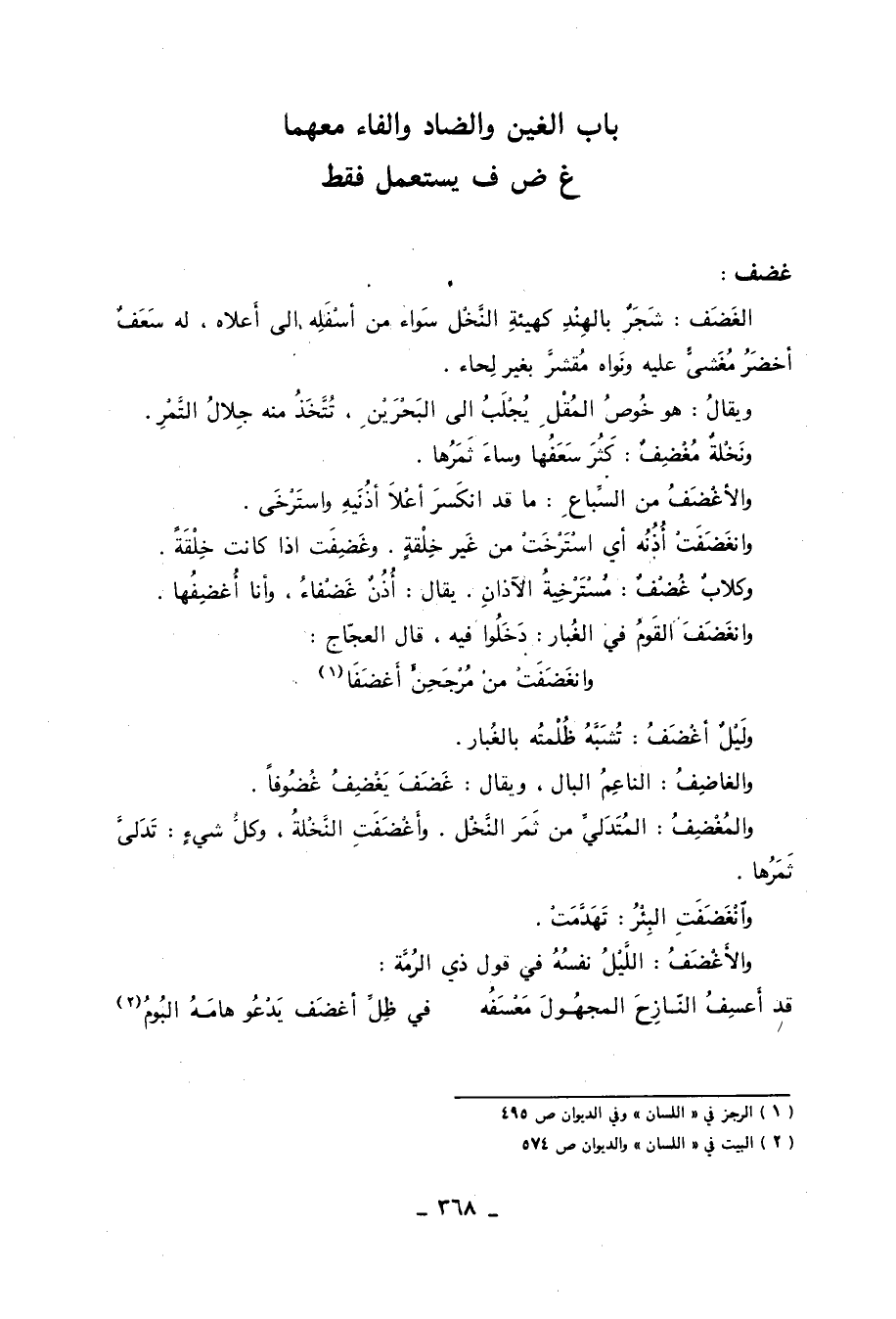 باب الغين والضاد والفاء معهما غ ض ف يستعمل فقط
