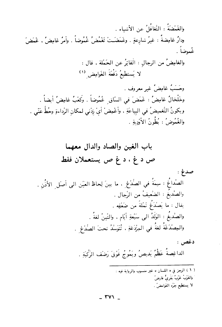 باب الغين والصاد والدال معهما ص د غ، د غ ص يستعملان فقط