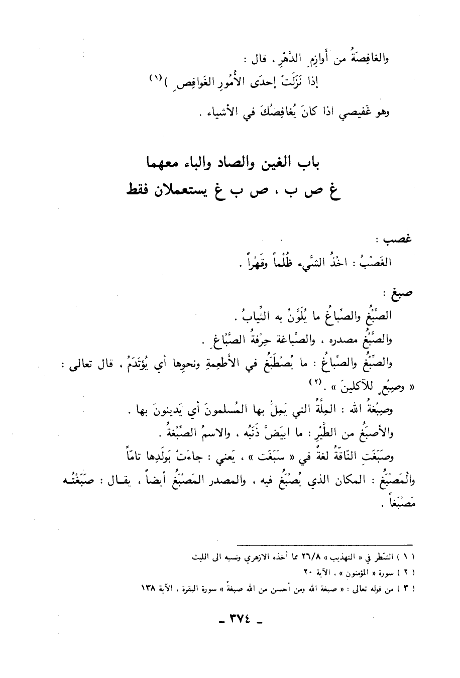 باب الغين والصاد والباء معهما غ ص ب، ص ب غ يستعملان فقط