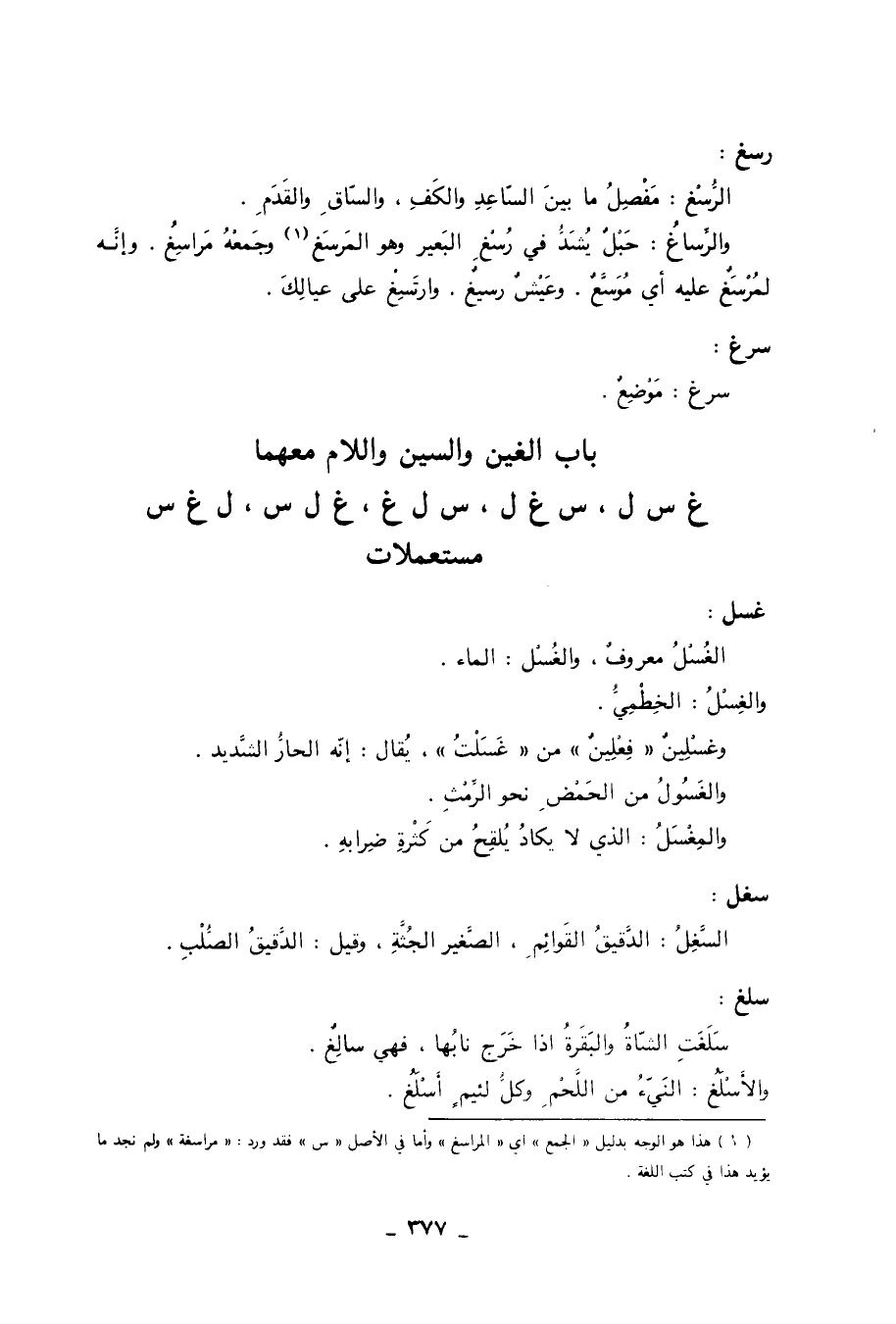 باب الغين والسين واللام معهما غ س ل، س غ ل، س ل غ، غ ل س، ل غ س مستعملات