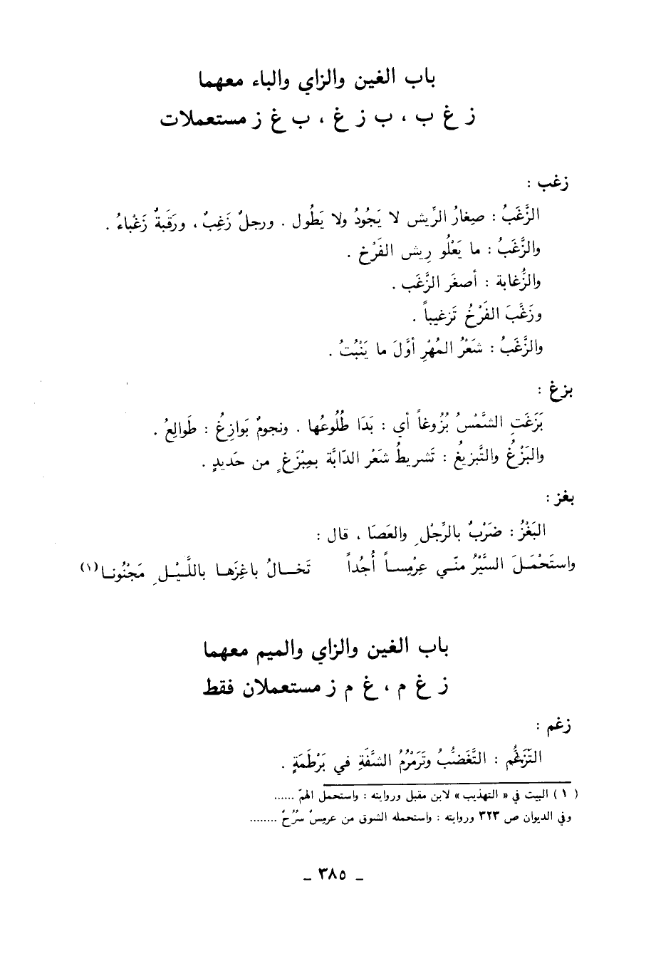 باب الغين والزاي والباء معهما ز غ ب، ب ز غ، ب غ ز مستعملات
