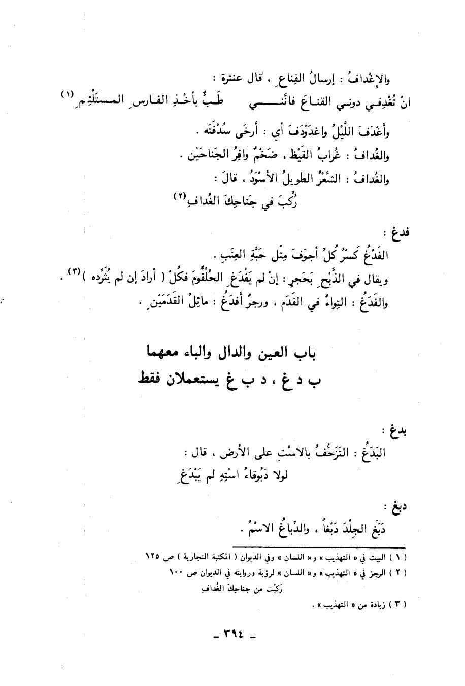 باب العين والدال والباء معهما ب د غ، د ب غ يستعملان فقط
