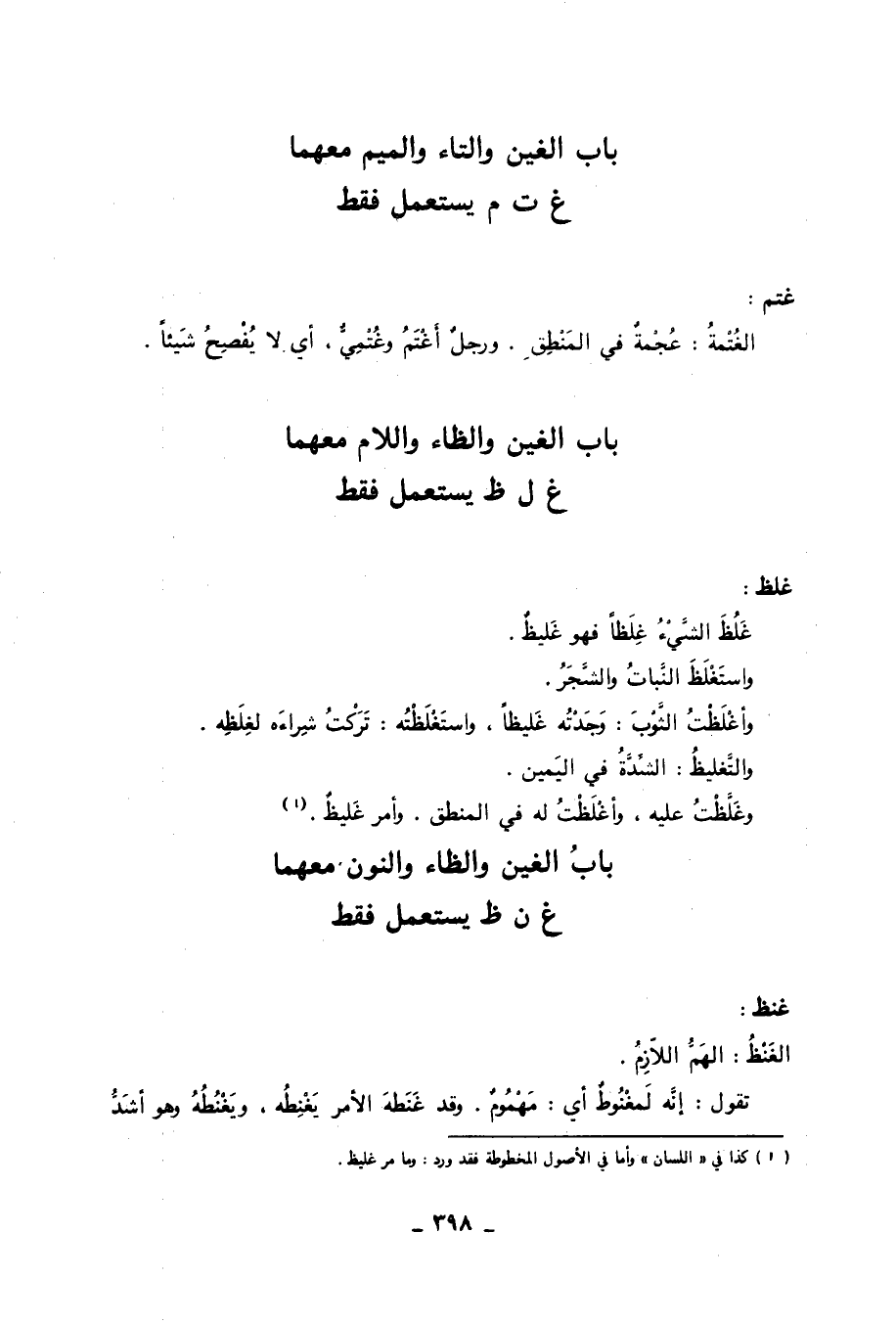 باب الغين والظاء واللام معهما غ ل ظ يستعمل فقط