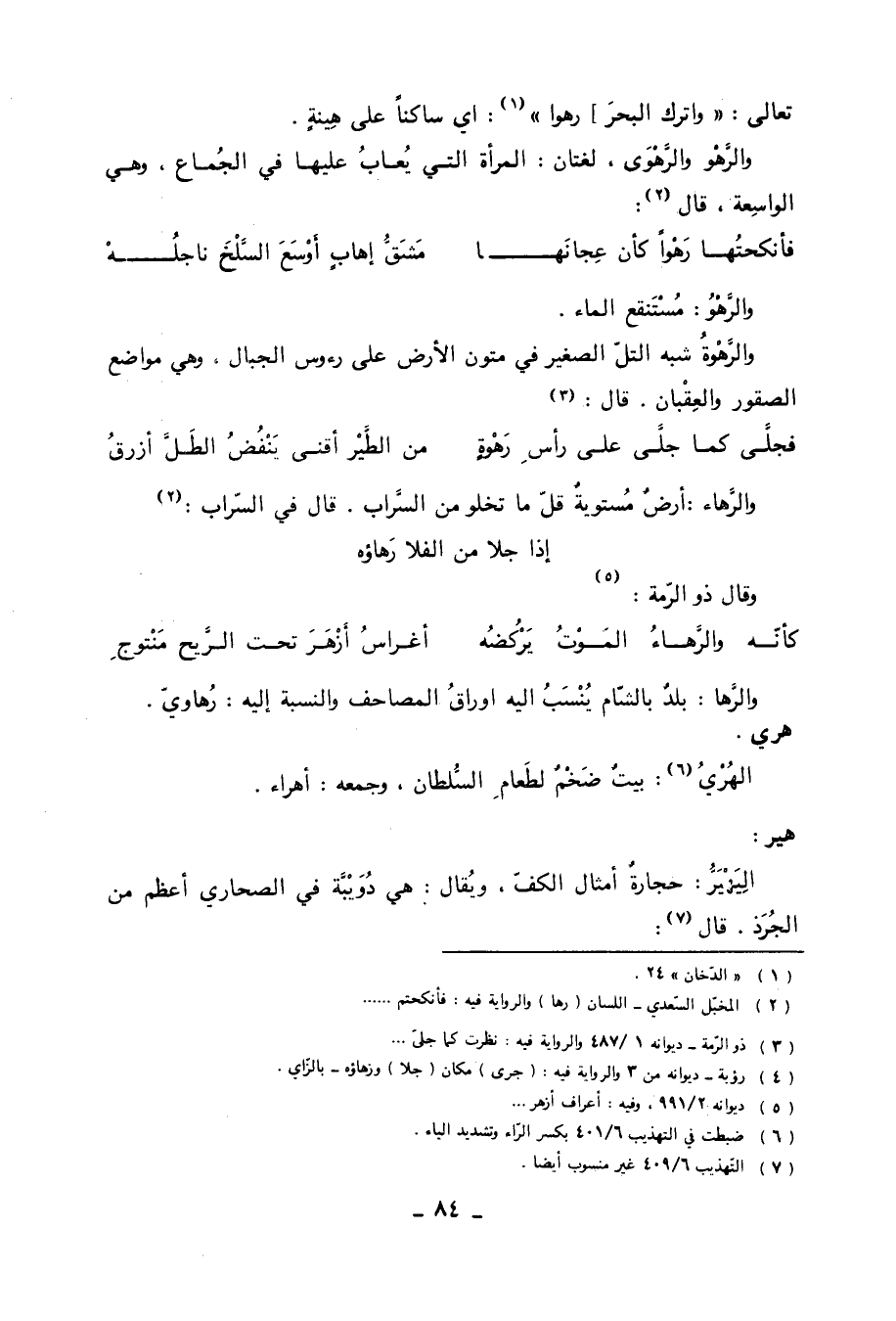 (4) (رؤبة) ديوانه من 3 والرواية فيه: (جرى) مكان (جلا) وزهاؤه- بالزاي.
