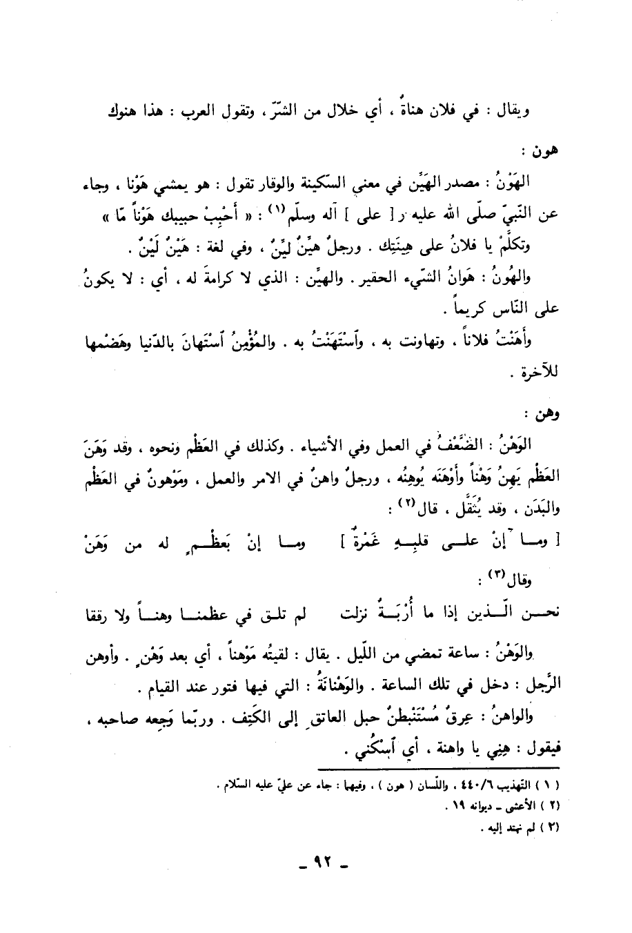 (1) التهذيب 6/ 440، واللسان (هون) ، وفيهما: جاء عن علي عليه السلام.