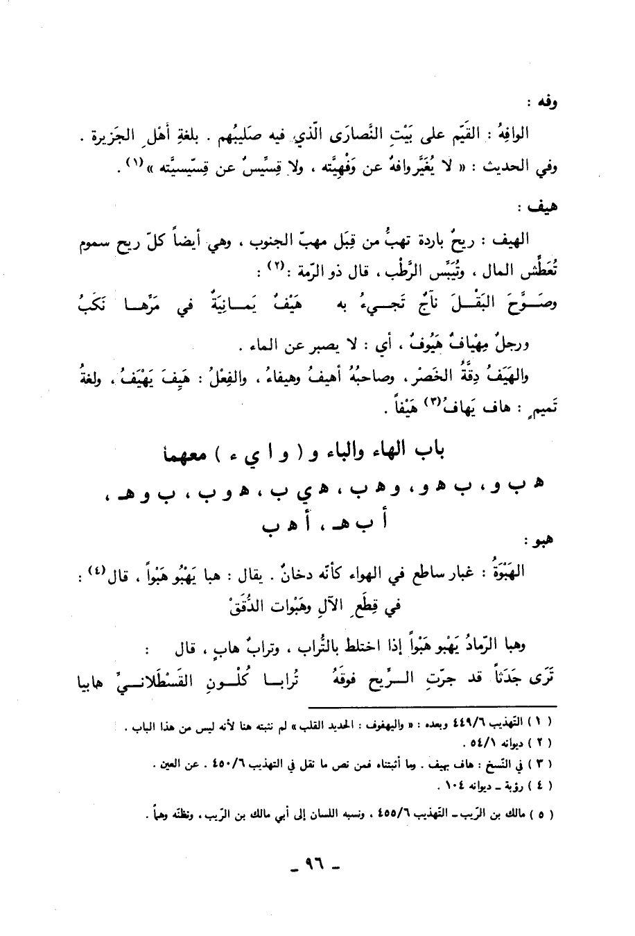 باب الهاء والباء و (وا يء) معهما هـ ب و، ب هـ و، وهـ ب، هـ ي ب، هـ وب، ب وهـ، أب هـ، أهـ ب